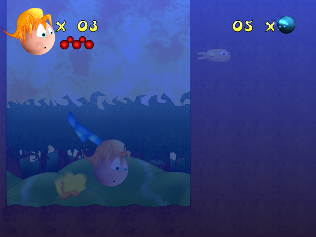 Then, an underwater screenshot ( note that I have updated the interface, but I still need to do a background for swimming underwater - normally, you don't see the clouds through the water XD ). Oh, and fish! Click here to view.